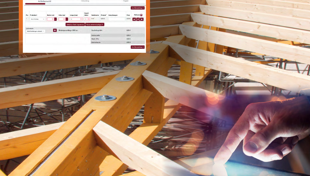 Mit dem „Stangomat“ in BestelloPlus können Sie KVH-Bauteillisten entweder millimetergenau eingeben oder eine vorbereitete Excel-Tabelle ausgefüllt hochladen. Die Bauteile erhalten Sie wahlweise als Mehrfachlängen oder exakten Zuschnitt.