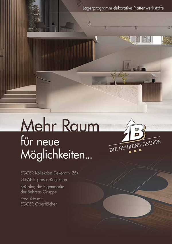 Mit der EGGER Kollektion Dekorativ 26+ und dem gleichzeitigen Start der CLEAF Espresso-Kollektion werden Ihnen jetzt noch weitere Möglichkeiten eröffnet ihren Ideenreichtum in die Tat umzusetzen. Alle Neuheiten stellen eine exklusive und zukunftsweisende Bereicherung des bereits nahezu unschlagbaren Dekor- und Produktsortiments dar.